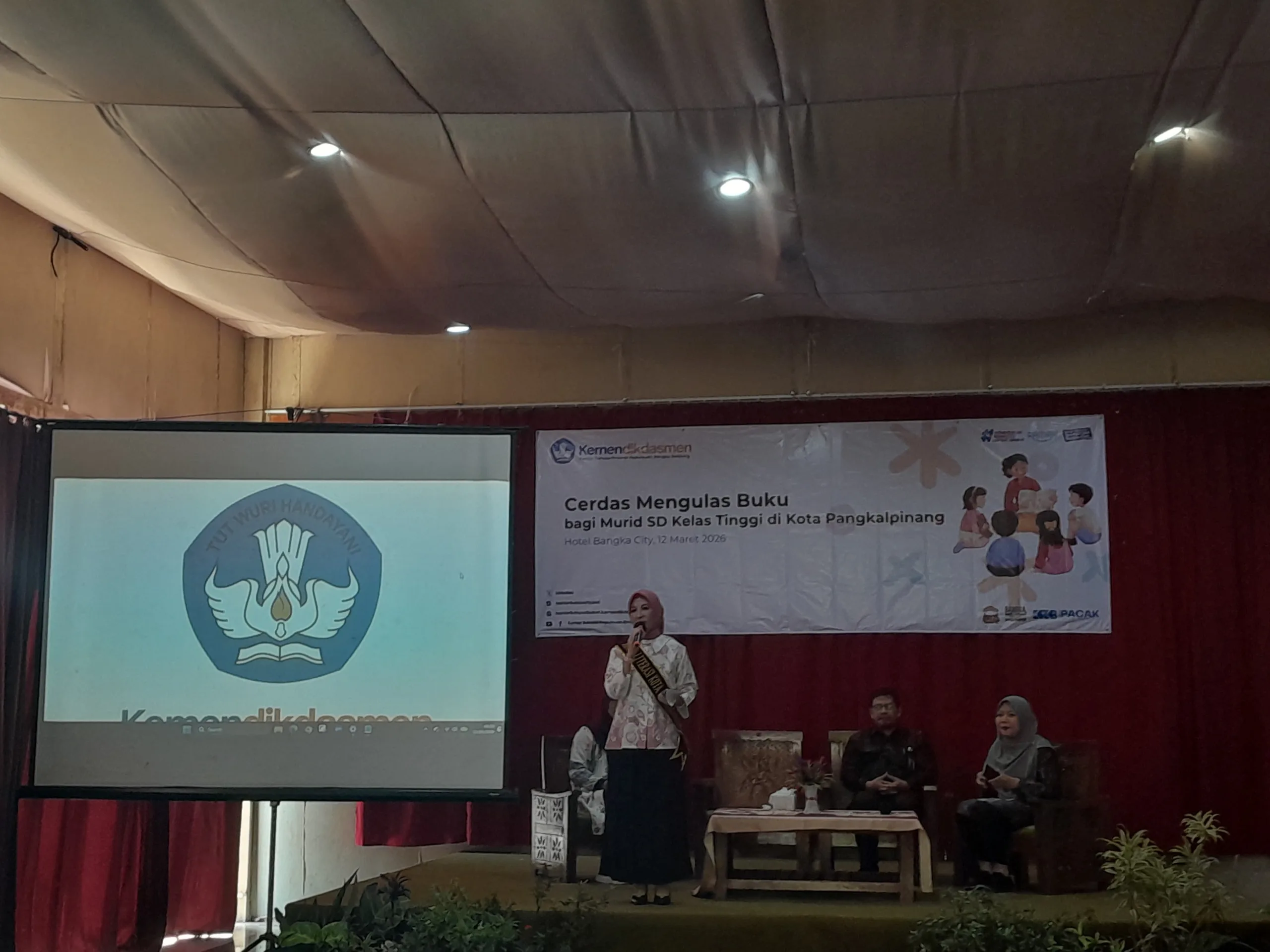 Bangkatimes.com|Pangkalpinang – Bunda Literasi Kota Pangkalpinang, Susanti Saparudin menghadiri undangan sekaligus membuka acara Bimbingan Teknis Cerdas Mengulas Buku Bagi Siswa Sekolah Dasar di Provinsi Kep. Babel. Acara tersebut digelar di Bangka City Hotel, Kamis (12/3/26).
