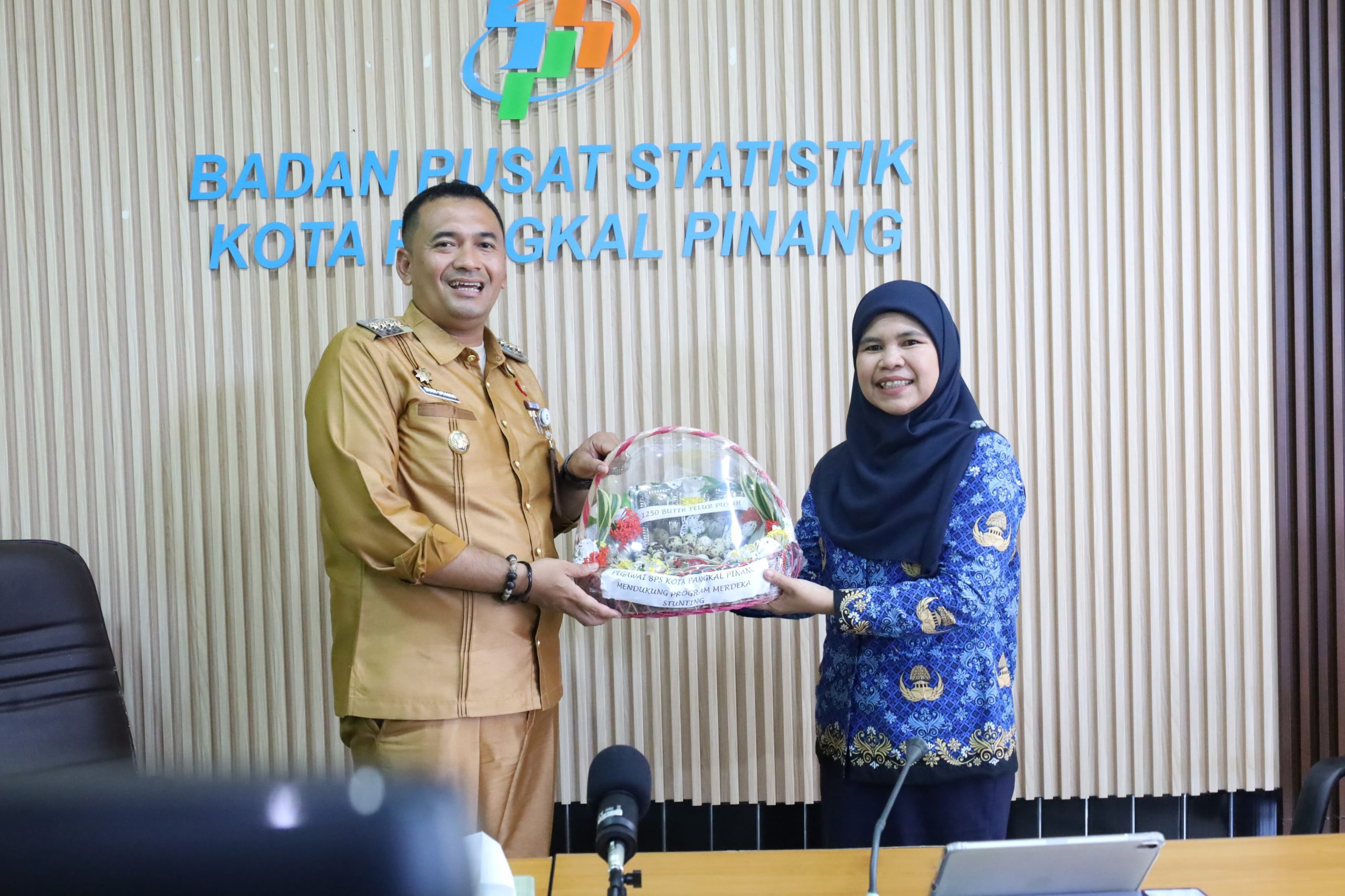 Penyerahan secara simbolis dilakukan langsung oleh Ketua BPS Kota Pangkalpinang, Dewi Savitri kepada Pj Wali Kota Pangkalpinang, Budi Utama usai melakukan kegiatan rilis berita resmi statistik Selasa (1/10/2024) di Kantor BPS Kota Pangkalpinang.