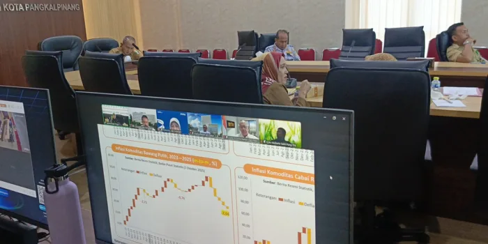 Bangkatimes.com|Pangkalpinang – Iskandar Aidul Fitri selaku Kepala Bagian Ekonomi Pemerintah Kota (Pemkot) Pangkalpinang mewakili Penjabat Walikota Pangkalpinang menghadiri undangan Rapat Koordinasi dalam Rangka Pengendalian Inflasi Daerah dan Pembahasan Evaluasi Dukungan Pemerintah Daerah dalam Program 3 Juta Rumah oleh Kementerian Dalam Negeri RI (Kemendagri) melalui Zoom Meeting di Smart Room Center (RSC) Lt.2 Kantor Walikota Pangkalpinang, Senin (06/10/25).