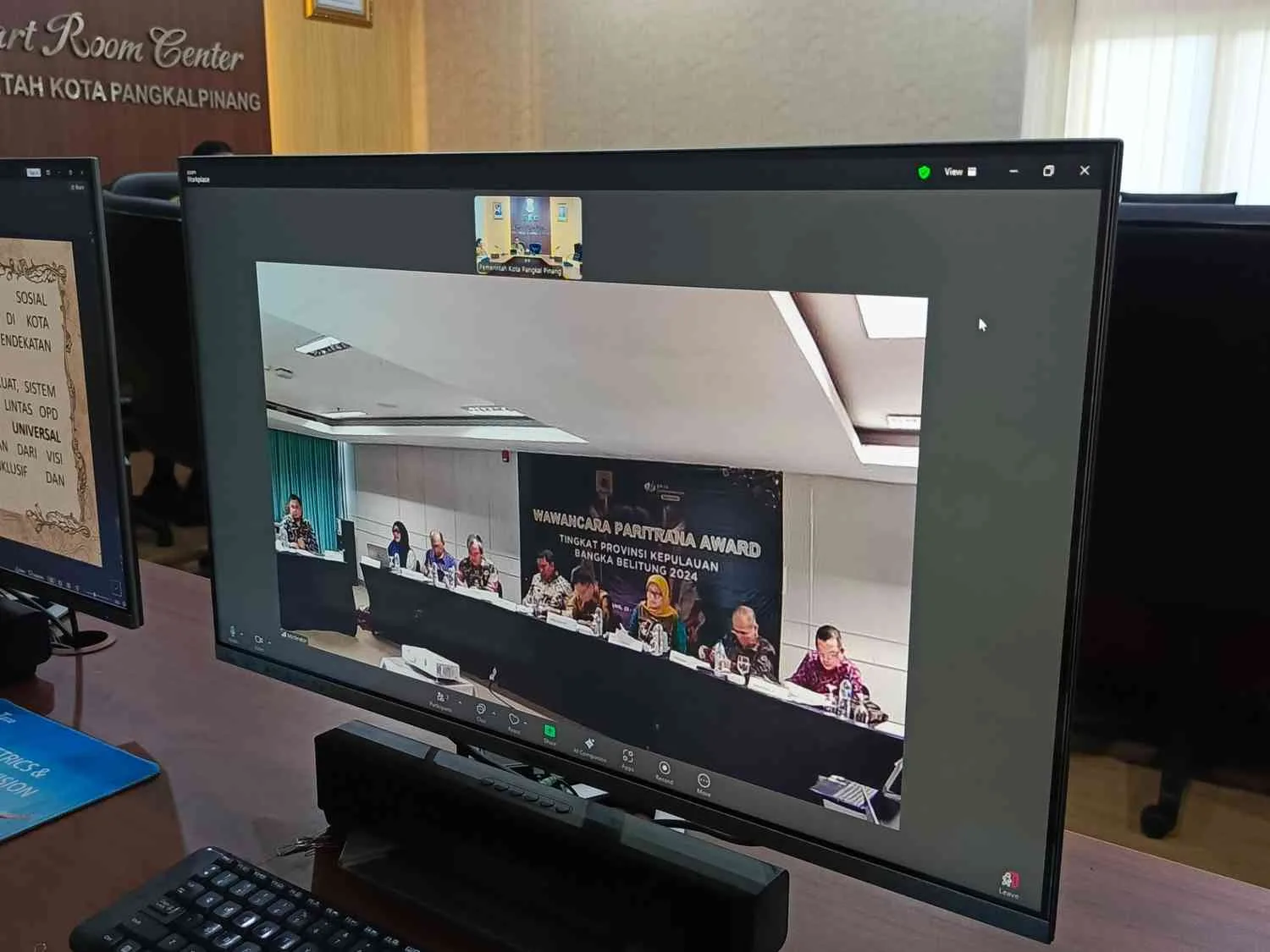 Bangkatimes.com|Pangkalpinang – Sekretaris Daerah (Sekda) Pemkot Pangkalpinang, Mie Go beserta jajarannya menghadiri undangan Acara Wawancara Kandidat Paritrana Award Tahun 2025 Tingkat Provinsi Kep. Babel Melalui Zoom Meeting di Smart Room Center (SRC), Lt. 2 Kantor Walikota Pangkalpinang, senin (23/06/25).