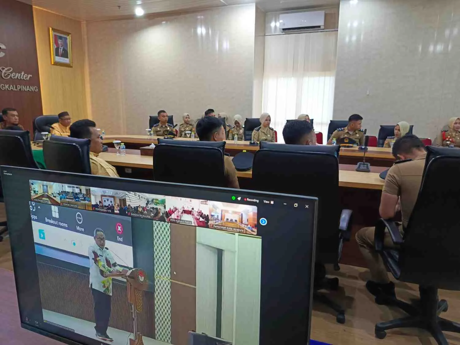 Bangkatimes.com|Pangkalpinang – Juhaini Plt. Asisten Perekonomian dan Pembangunan mewakili Penjabat Walikota Pangkalpinang menghadiri undangan Penutupan Magang Praja Institut Pemerintahan Dalam Negeri (IPDN) Tahun Anggaran (TA) 2024/2025 melalui zoom meeting di Smart Room Center (SRC), Lt. 2 Kantor Walikota Pangkalpinang, kamis (08/05/25).