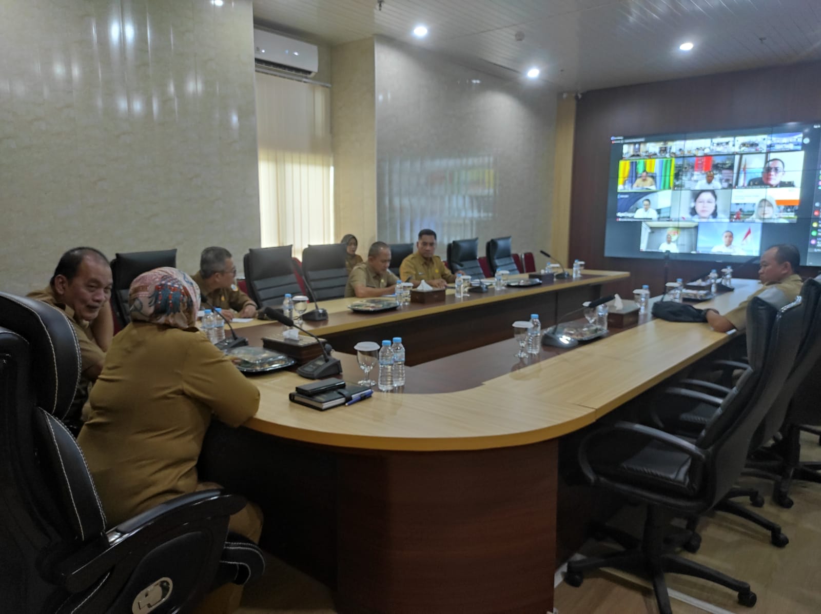 PANGKALPINANG – Penjabat (Pj) Wali Kota Pangkalpinang, Lusje Anneke Tabalujan bersama Asisten Perekonomian dan Pembangunan menghadiri rapat koordinasi dalam rangka pengendalian inflasi tahun 2024 oleh Kementerian Dalam Negeri, Senin (29/1/2023) di Smart Room Center Kantor Wali Kota Pangkalpinang.