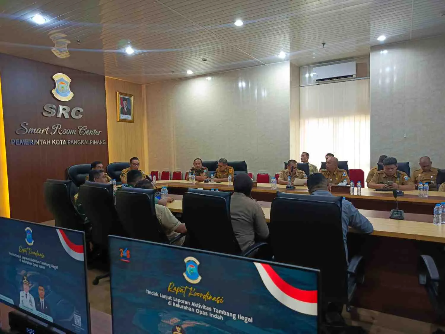 Bangkatimes.com|Pangkalpinang – Penjabat (Pj.) Walikota Pangkalpinang, M. Unu Ibnudin menghadiri undangan Rapat Koordinasi Tindak Lanjut Laporan Aktivitas Tambang Ilegal di Kelurahan Opas Indah, rapat tersebut dilaksanakan bersama Forkopimda dan jajaran Pemkot Pangkalpinang di Smart Room Center, Lt.2 Kantor Walikota Pangkalpinang, selasa (16/09/25).