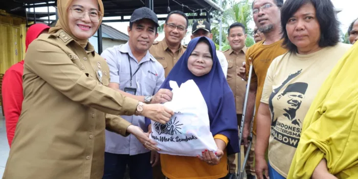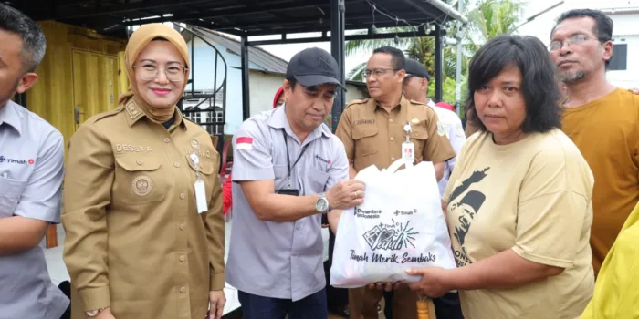 Bangkatimes.com|Pangkalpinang – Wakil Wali Kota Pangkalpinang Dessy Ayutrisna, menyerahkan bantuan 300 paket sembako kepada 300 warga terdampak bencana banjir rob, di Kelurahan Opas Indah tepatnya di Gang Buntu, Selasa (9/12/2025).