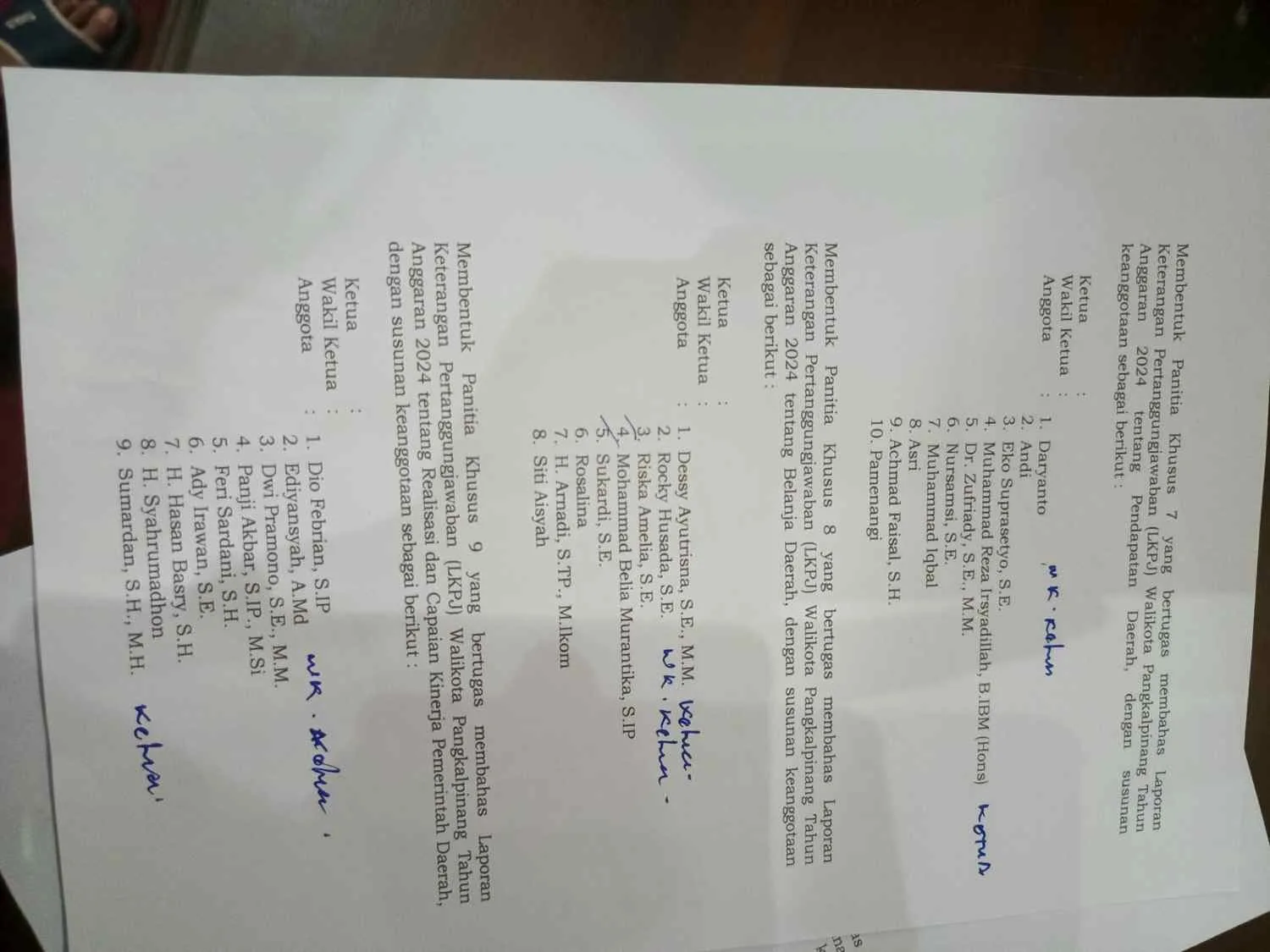 • Pansus 9, membahas tentang realisasi dan capaian kinerja pemerintah daerah beranggotakan 9 orang anggota DPRD Kota Pangkalpinang yang diketuai oleh Sumardan.