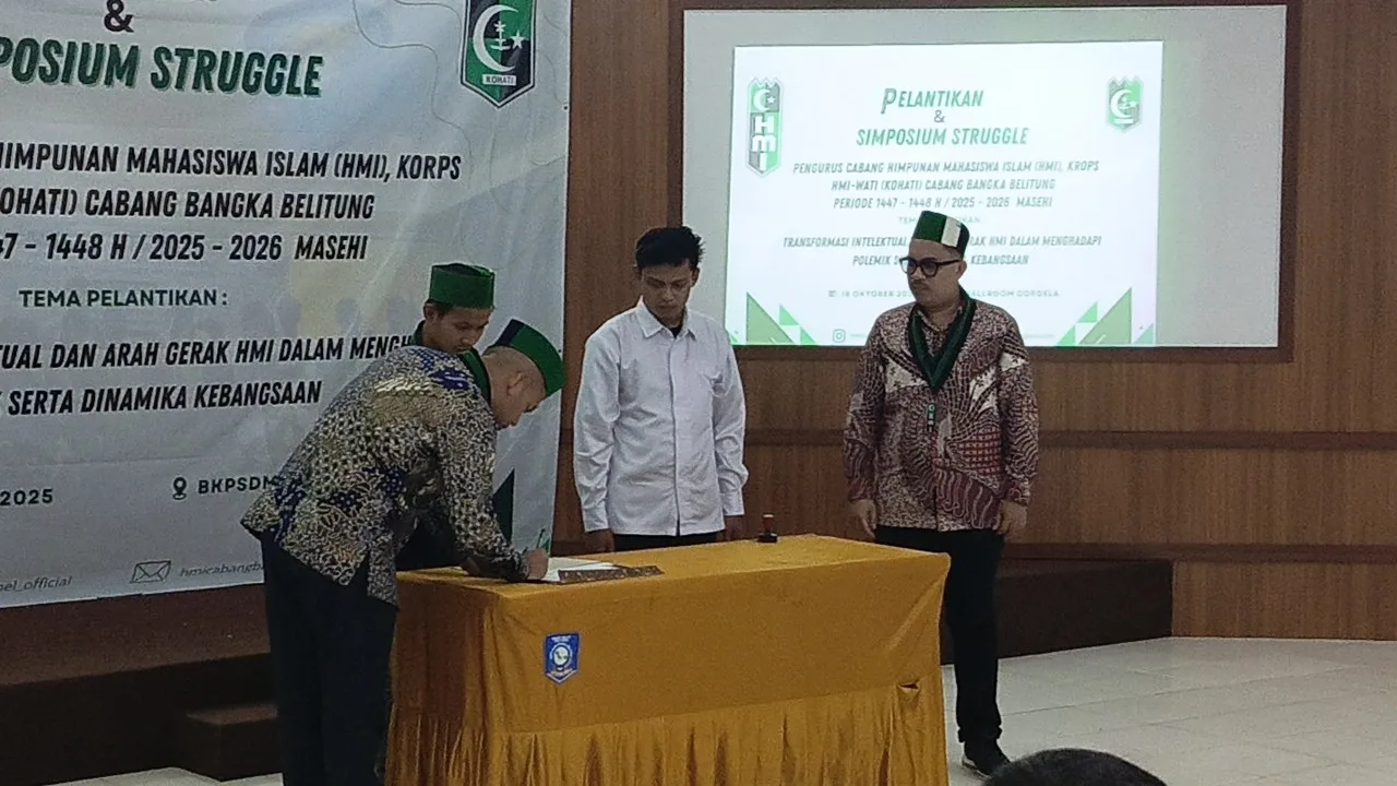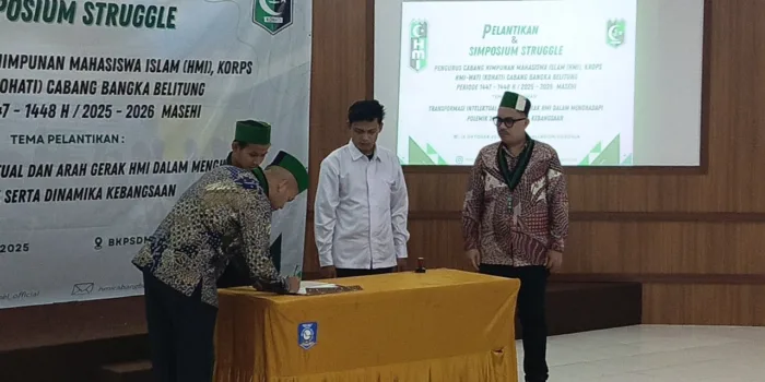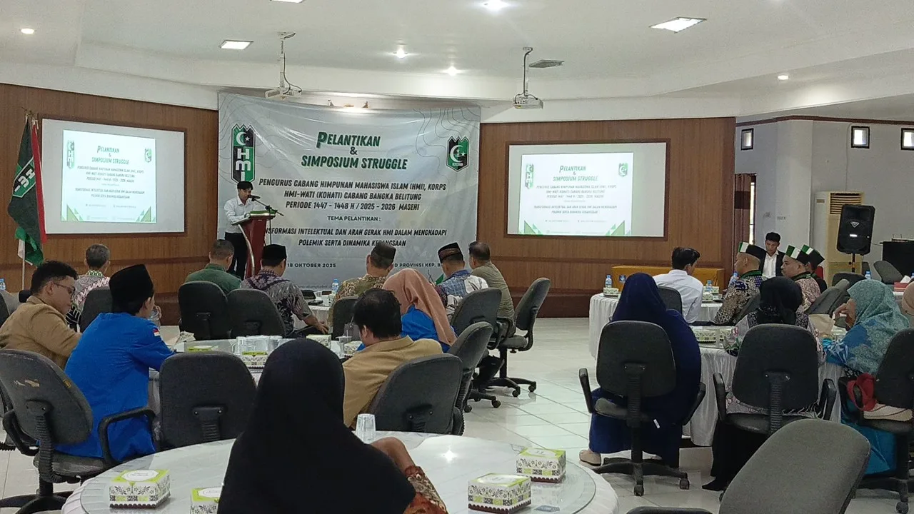 Bangkatimes.com|Pangkalpinang – Asisten Pemerintahan dan Kesra, Akhmad Subekti mewakili Wali Kota Pangkalpinang menghadiri undangan acara Pelantikan Himpunan Mahasiswa Islam (HMI) dan Korps HMI-wati (Kohati) Cabang Bangka Belitung dengan Tema “Transformasi Intelektual dan Arah Gerak HMI Dalam Menghadapi Polemik serta Dinamika Kebangsaan” di Gedung BKPSDMD Provinsi Kepulauan Bangka Belitung (Babel), Sabtu (18/10/25).